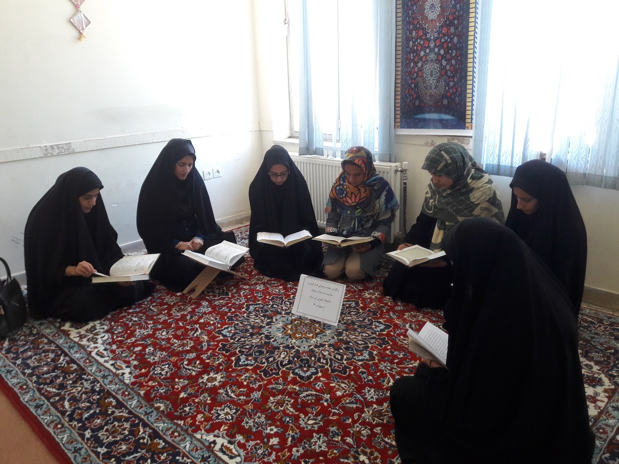 جلسه روانخوانی قران کریم با حضورزنان خانه دارعضو کتابخانه درمحل نمازخانه به مناسبت ایام ویژه ماه مبارک رمضان